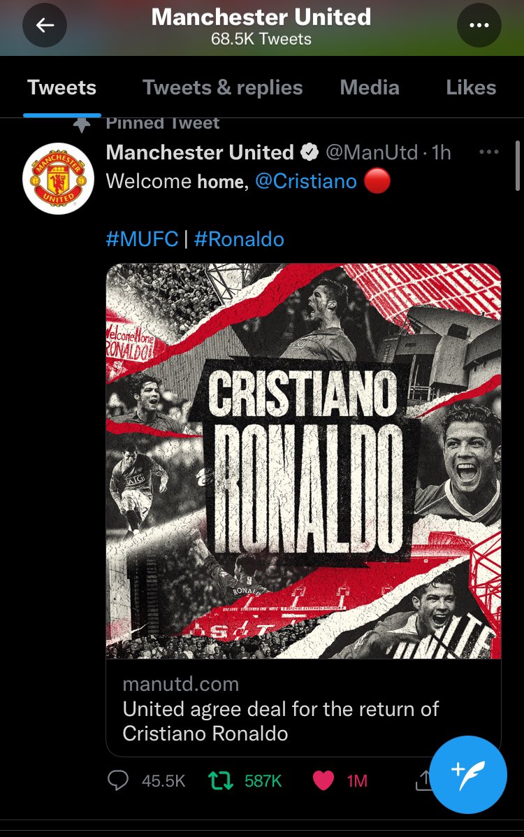 Ronaldo transfer news today twitter. Ronaldo believes Manchester City is currently his best option to win another title before heading to MLS Lopes added. Transfer News Live DeadlineDayLive August 24 2021 Reliable sources have now confirmed Mendes DID offer Cristiano Ronaldo to CityThat means Ronaldo was actually open to signing for themImagine the fume from United fans who have spent the last decade acting like hes been on loan all. The deal returns Ronaldo 36 to.